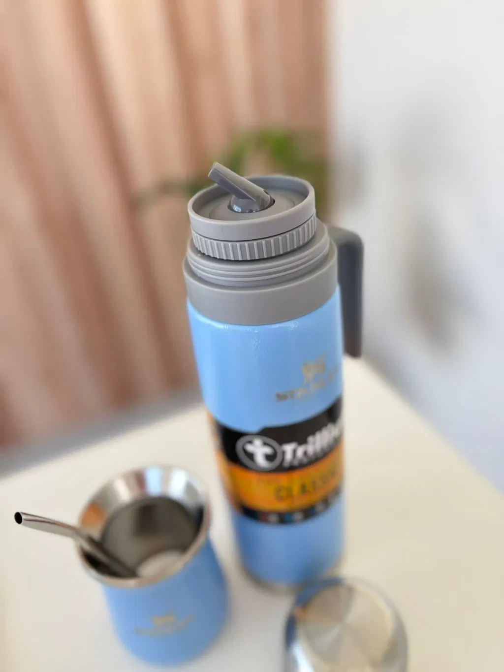 Termo Imitación Stanley + Mate y Bombilla de Regalo - Celeste